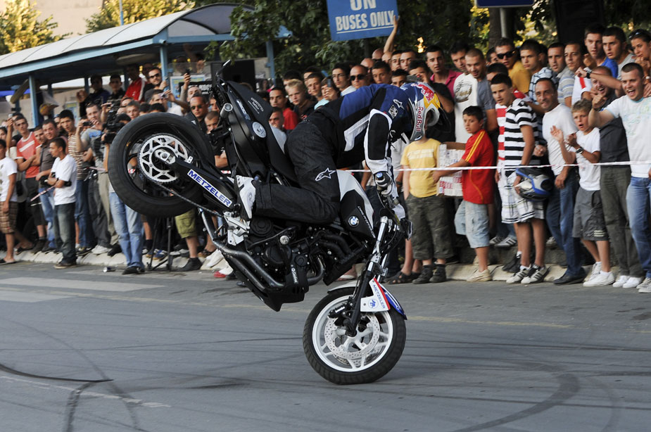 當(dāng)?shù)貢r(shí)間26日,德國著名的特技表演大師Chris Pfeiffer在科索沃地區(qū)的Pristina進(jìn)行一場街頭表演。