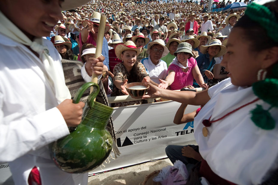 每年7月的最后兩個星期一是瓦哈卡聞名世界的“蓋拉蓋查節(jié)(Guelaguetza)”,來自瓦哈卡州各地、各具特色的印第安部落推選出具有代表性的舞蹈隊,在瓦哈卡城外的弗爾丁山上載歌載舞,同時也為前來觀看的世界各地游客獻上本部落的土特產。