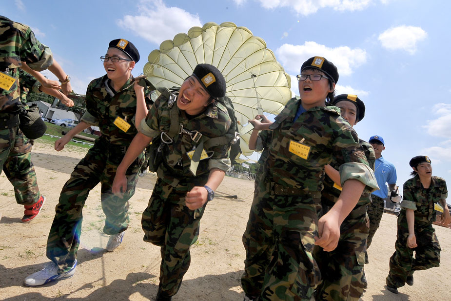 7月29日,韓國數(shù)百名學生和市民在位于首爾的美軍基地參加軍訓(xùn)夏令營,此次軍訓(xùn)夏令營共為期四天。