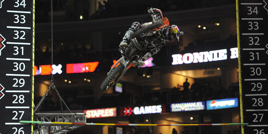 當(dāng)?shù)貢r(shí)間7月30日,美國洛杉磯舉行了一場極限摩托大賽,各路好手上演了摩托車跨越高桿的精彩表演。