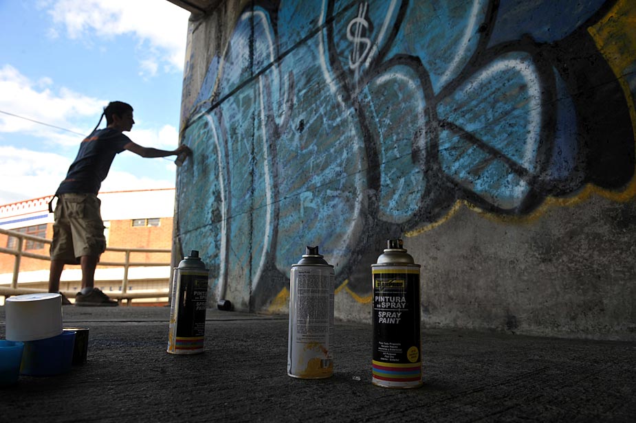 近日,哥倫比亞考卡山谷省卡利市的年輕人用涂料在墻上涂鴉,表達(dá)他們對(duì)世界的看法。