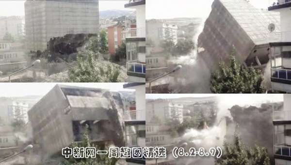 8月2日土耳其北部省份昌克勒一建筑工地在拆除樓房時(shí)發(fā)生意外,被爆破的樓房不但沒有解體垮塌反而整體翻滾180度后“倒立”一旁,還差點(diǎn)兒撞上了附近的居民樓。(圖片來源:揚(yáng)子晚報(bào))點(diǎn)擊觀看詳細(xì)內(nèi)容