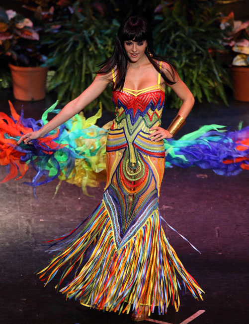 圖為哥倫比亞小姐米歇爾展示民族風格服飾。