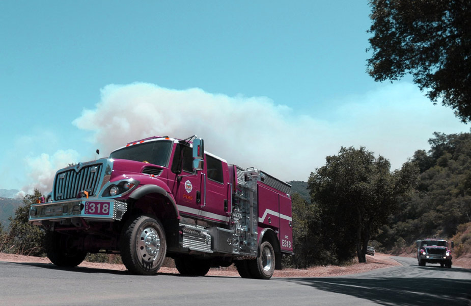 2009年8月13日,加州中北部的圣塔克魯茲開始燃起山火,幾千名陸續(xù)趕到的消防隊員參加滅火。