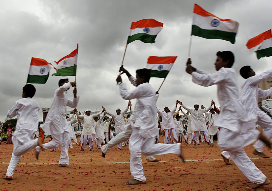 圖為印度民眾跳起歡樂的舞蹈,慶祝獨(dú)立62周年。