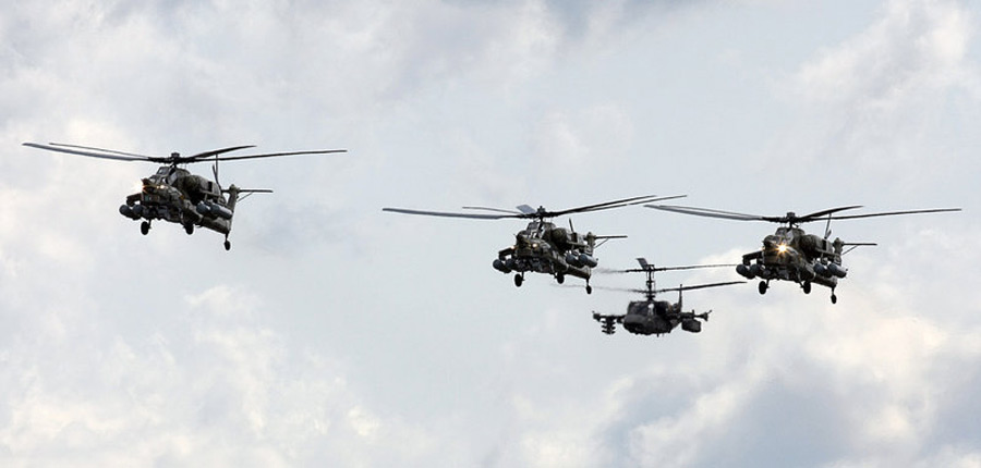 圖為武裝直升飛機(jī)進(jìn)行飛行表演。