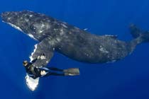潛水員與座頭鯨同游