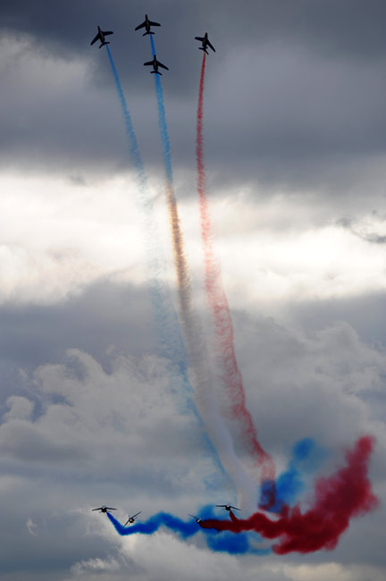 8月21日,在俄羅斯茹科夫斯基市舉行的第九屆國際航空航天展覽會(huì)上,法國著名的“法蘭西巡邏兵”飛行表演隊(duì)進(jìn)行了精彩的飛行表演。