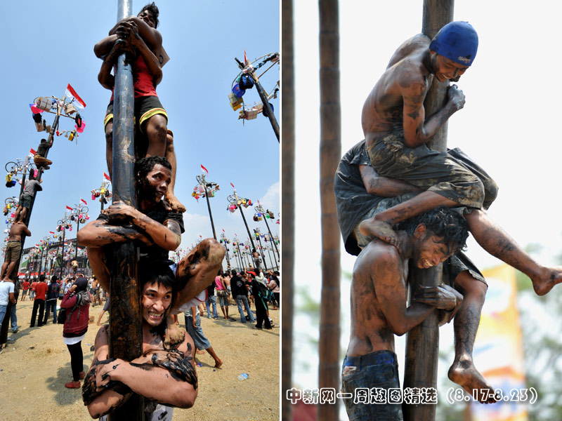 8月17日,近2000名年輕人在印尼首都雅加達(dá)一個(gè)公園內(nèi)參加爬桿大賽,慶祝國(guó)家獨(dú)立64周年。點(diǎn)擊觀看詳細(xì)內(nèi)容