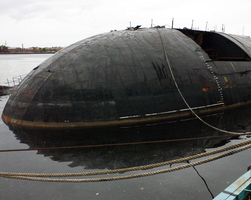 被拆解的核潛艇屬于臺(tái)風(fēng)級(jí)戰(zhàn)略核潛艇,編號(hào)TK13。2008年7月,該艇被運(yùn)抵俄羅斯北部北德文斯克的茲韋茲多奇卡(Zvezdochka)船廠。(環(huán)球網(wǎng))