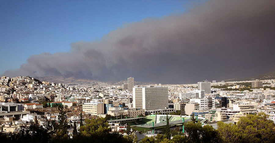 雅典北部山火愈演愈烈 上空濃煙滾滾