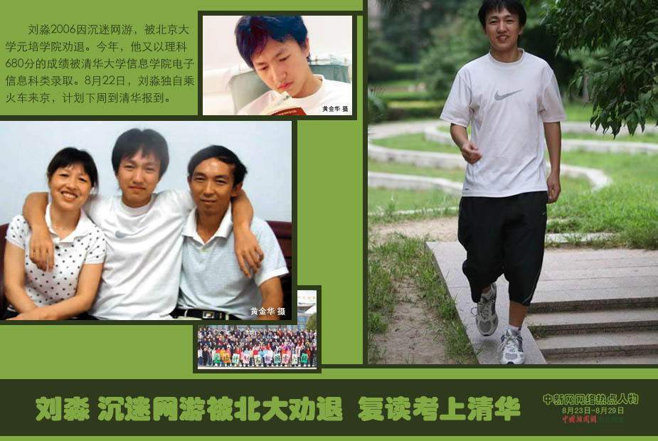 中新網(wǎng)本周熱點(diǎn)人物之——劉淼 劉淼2006因沉迷網(wǎng)游,被北京大學(xué)元培學(xué)院勸退。今年,他又以理科680分的成績被清華大學(xué)信息學(xué)院電子信息科類錄取。8月22日,劉淼獨(dú)自乘火車來京,計(jì)劃下周到清華報(bào)到。