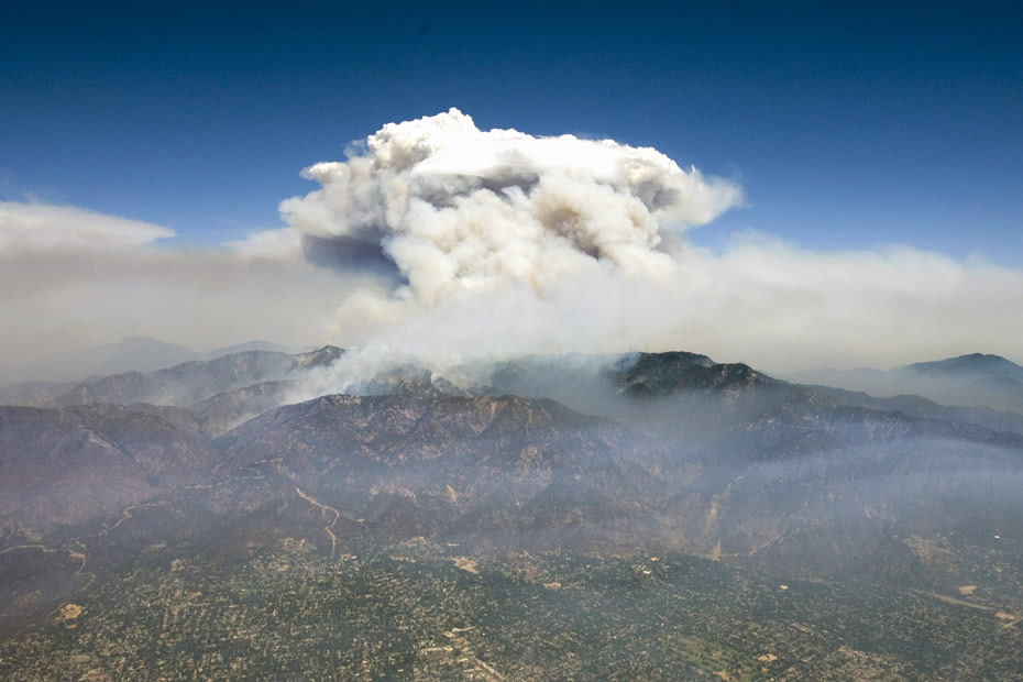 從遠處看,從火災(zāi)現(xiàn)場升起的煙塵好像核彈爆炸產(chǎn)生的“蘑菇云”一般。