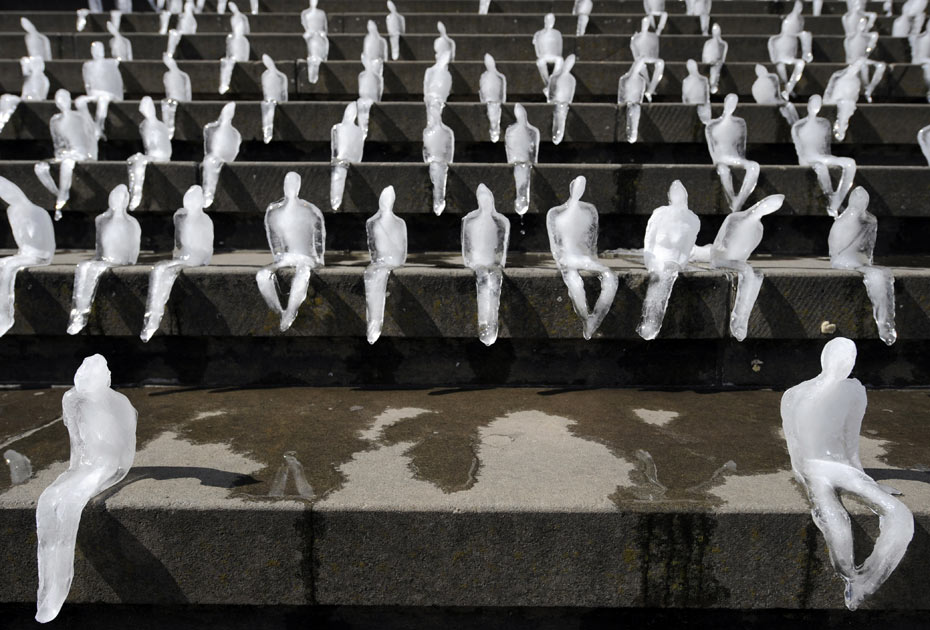 9月2日,德國柏林,世界野生動物基金會(WWF)將1000個小冰人被放置在了御林廣場音樂廳的臺階上,小冰人慢慢融化成水;顒拥慕M織者希望此舉能引起公眾對于全球變暖的關(guān)注。來源:中國新聞網(wǎng)