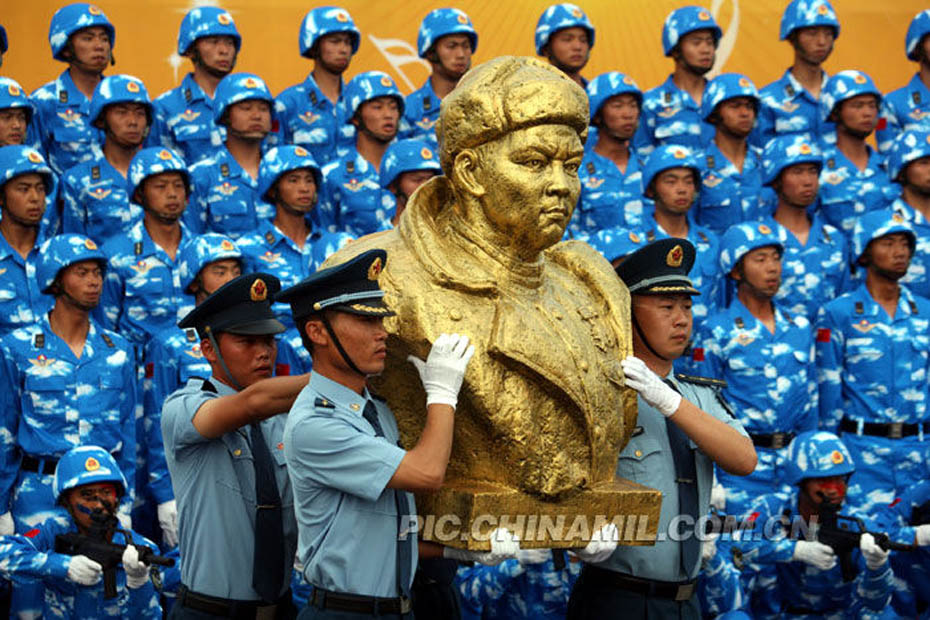 圖為空降兵表演《黃繼光是我們的軍魂》。