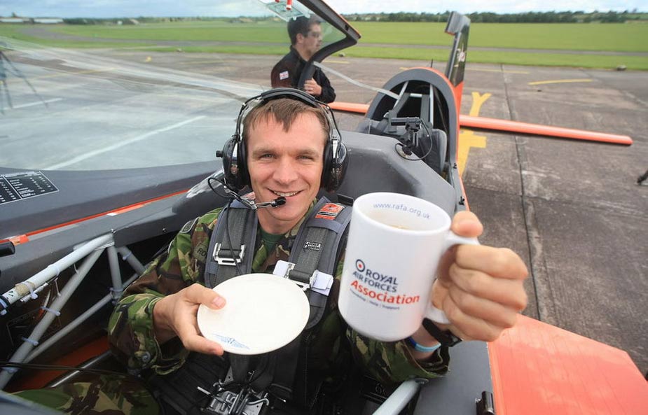 英軍人邊喝茶邊玩特技 駕機空中翻筋斗