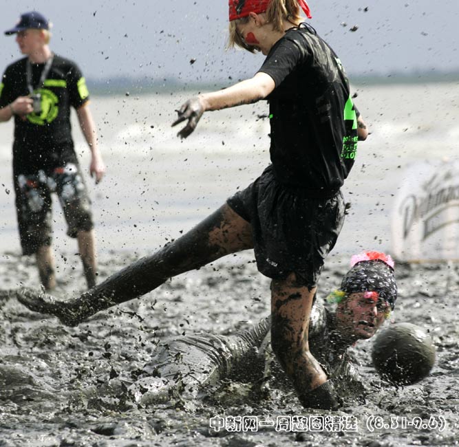 德國北部海邊小鎮(zhèn)Brunsbuettel的泥灘上進行一場別開生面的泥地足球賽。圖片來源:中國新聞網