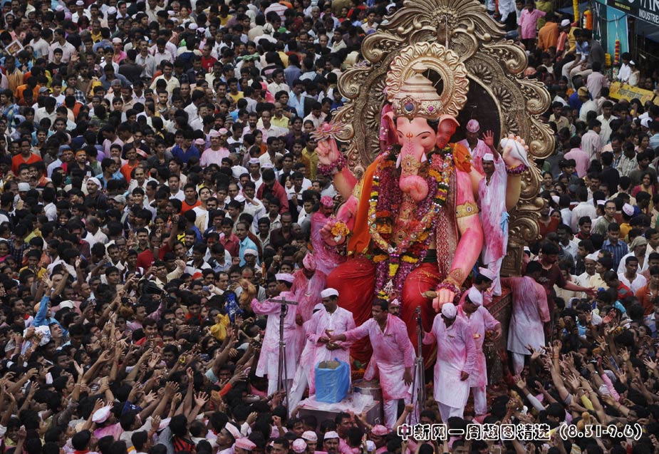 9月3日,印度各地的印度教教徒舉行盛大的儀式慶祝象頭神節(jié)。圖片來源:中國新聞網(wǎng)