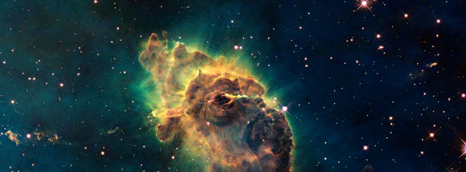 圖為哈勃望遠鏡上的相機拍攝的船底座星云中的由炙熱的氣體和塵埃組成的“創(chuàng)造之柱”。船底座星云位于距離地球7500光年的船底星座,是孕育恒星的地方。