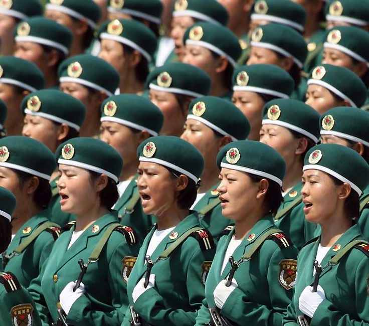 國(guó)慶60周年閱兵方陣中有三支“娘子軍”:三軍女兵方隊(duì)、女民兵方隊(duì)、女飛行員梯隊(duì)。這是新中國(guó)歷次閱兵中女兵方隊(duì)最多的一次,其中三軍女兵方隊(duì)和女飛行員梯隊(duì)是首次參加。圖片來源:新華網(wǎng)