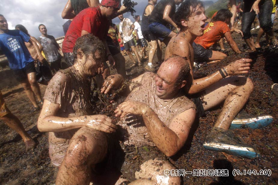 9月19日,在西班牙馬略卡島舉行了一年一度的“葡萄大戰(zhàn)”,人們以此慶祝當?shù)仄咸沿S收。圖片來源:中國新聞網(wǎng)