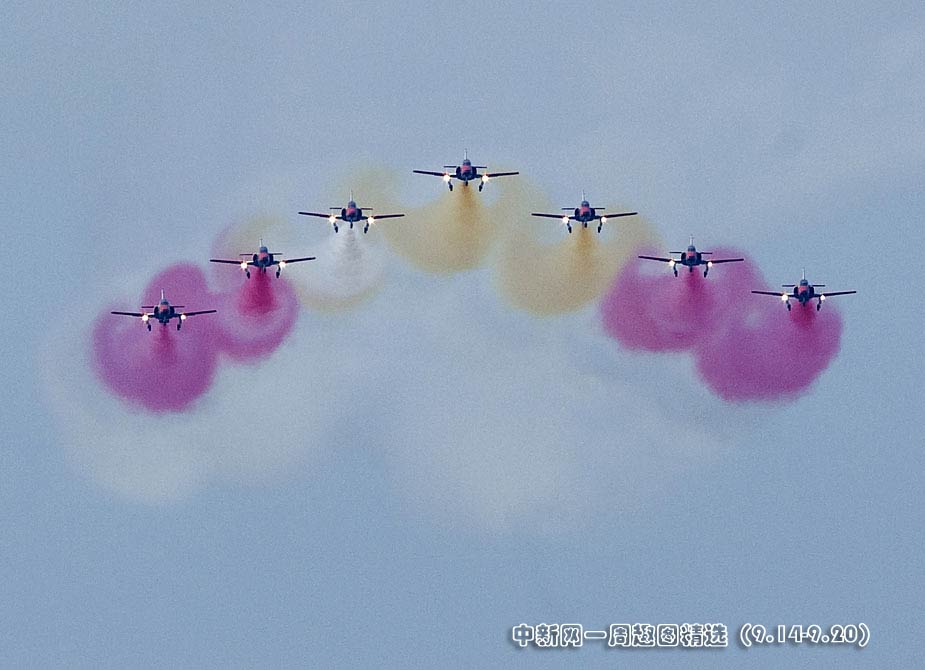 9月13日,西班牙南部加地斯地區(qū)舉行了一場別開生面的飛行表演。這次飛行表演使用的是二戰(zhàn)時期的老式飛機。圖片來源:中國新聞網(wǎng)