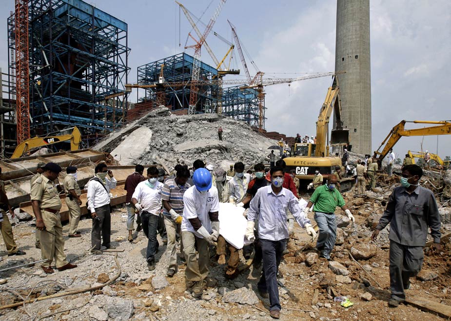 印度中部一座在建電廠的巨型煙囪23日下午發(fā)生倒塌,目前估計已有至少100人罹難。圖片來源:中國新聞網(wǎng)