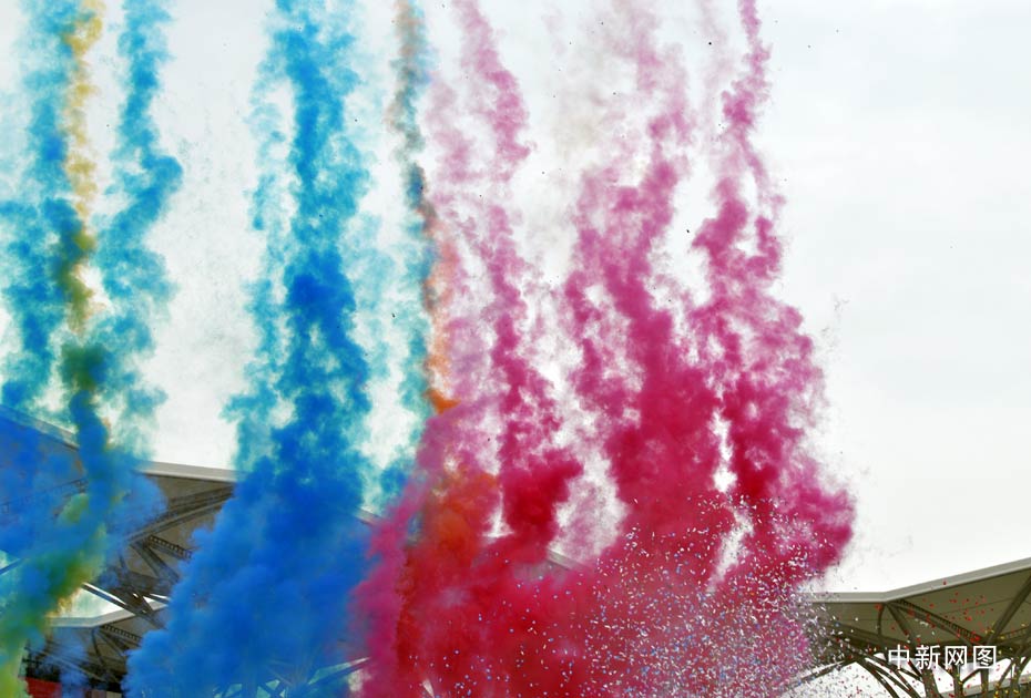 9月26日,第七屆中國(guó)花卉博覽會(huì)在北京順義主場(chǎng)館廣場(chǎng)隆重開幕,現(xiàn)場(chǎng)彩帶漫天飛舞“花雨”從天而降,以及異彩紛呈的表演成為一道豐盛的視覺大餐。中新網(wǎng)記者 金碩 攝