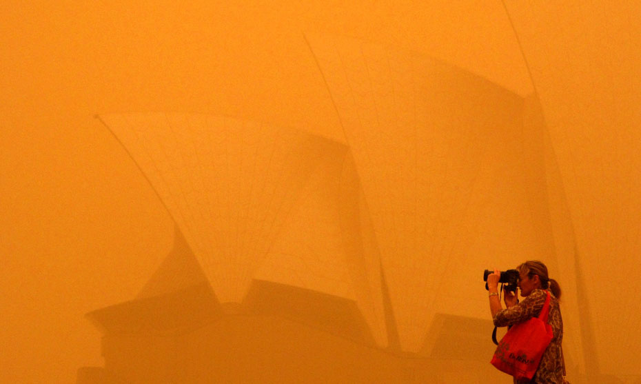 23日,包括悉尼在內(nèi)的澳大利亞東部地區(qū)出現(xiàn)沙塵暴天氣,當(dāng)?shù)亟煌ㄒ虼耸艿接绊。圖片來源:中國新聞網(wǎng)