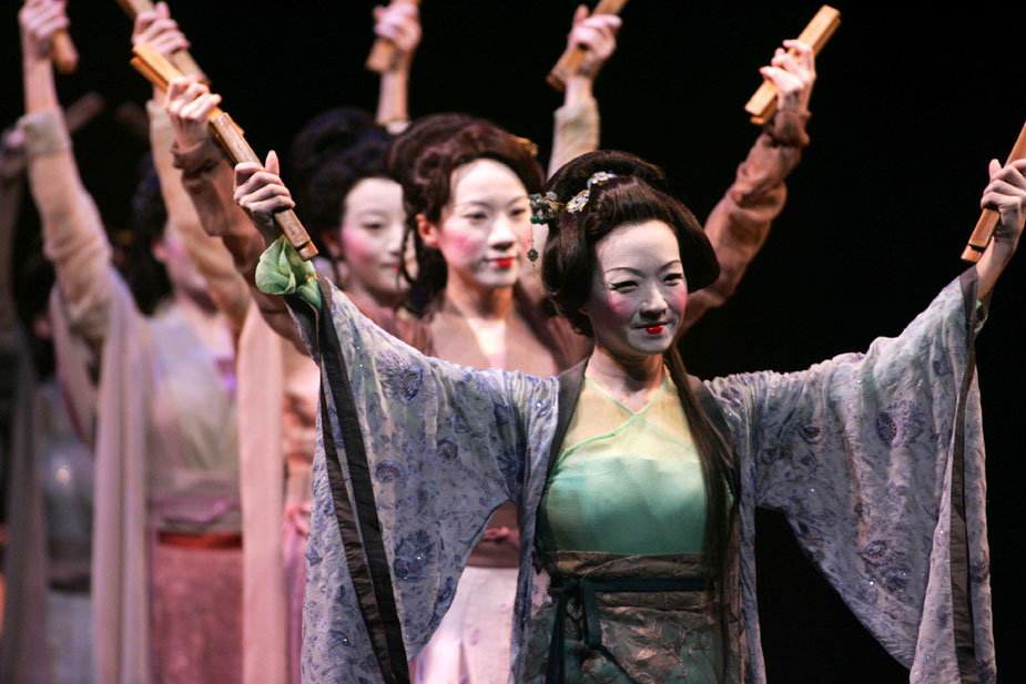 24日,由臺灣歌舞樂團漢唐樂府帶來的經(jīng)典巨作《韓熙載夜宴圖》在北京梅蘭芳大劇院上演,這是向新中國成立60周年獻禮劇目中,惟一一臺來自寶島臺灣藝術(shù)團體的演出。圖片來源:中國新聞網(wǎng)