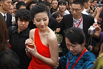 劉亦菲緊身紅裙亮相