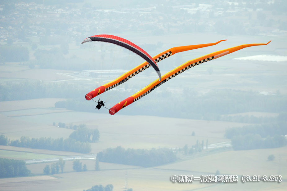 9月20日,法國東南部舉行第36屆伊卡洛斯杯自由飛行大賽,來自世界各地近萬名參賽者懷揣著夢(mèng)想,駕駛著自制飛行器飛上天空。圖片來源:中國新聞網(wǎng)