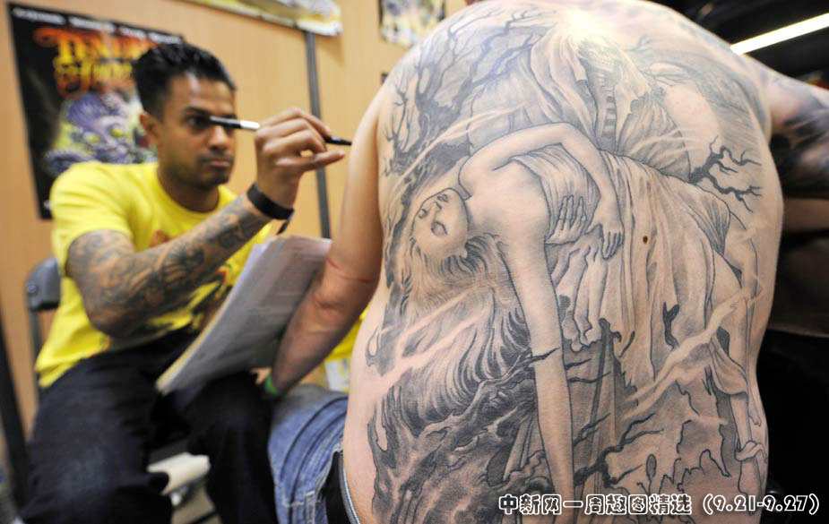 法國巴黎9月20日舉行“紋身藝術(shù)節(jié)”,吸引了成百上千紋身藝術(shù)大師到場獻(xiàn)藝。圖片來源:中國新聞網(wǎng)