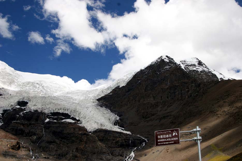 由于長(zhǎng)年受公路上的車塵的覆蓋,此冰川整體呈白分層形。山口南面6647米的卡魯峰是年楚河和羊卓雍錯(cuò)兩大水系的分水嶺,此處雪山高聳,周圍冰川地貌突出,巨大的冰川從山頂一直伸展到離公路只有幾百米的路邊,晶瑩幽藍(lán)的冰川寒氣迫人,加上山峰云霧飄緲,仿佛來到了生命絕跡的天界盡頭。