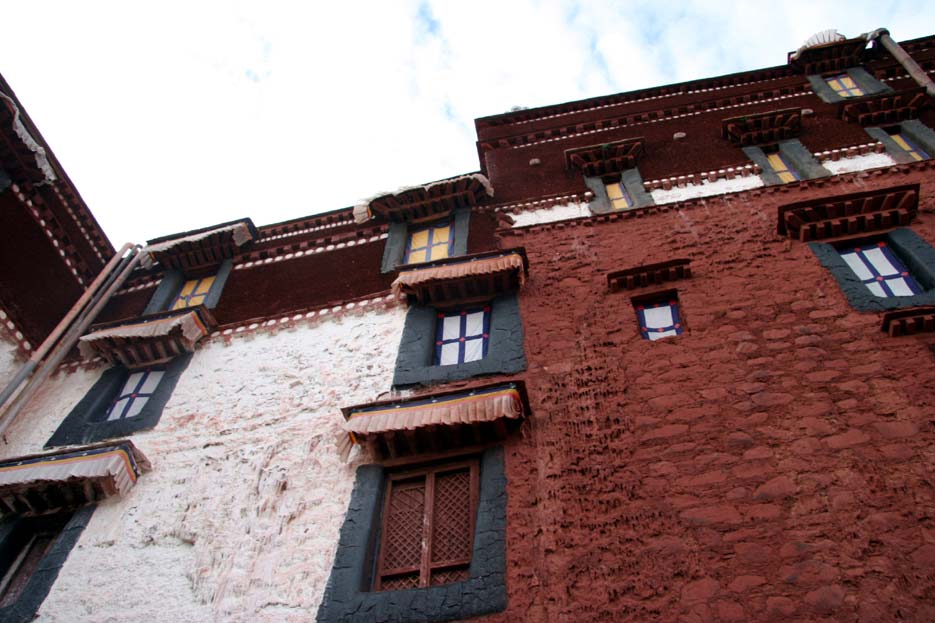 紅宮主要是達(dá)賴(lài)?yán)锏撵`塔殿和各類(lèi)佛殿。圖為白紅和紅宮的臨界。