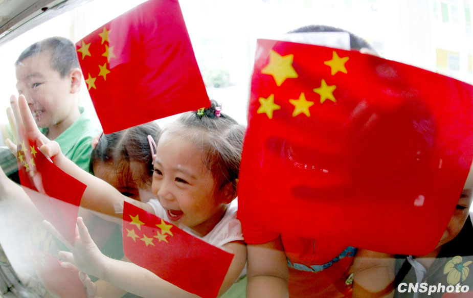 9月17日,在江蘇省無錫市僑誼實(shí)驗(yàn)幼兒園,孩子們正在教室里貼自己親手制作的五星紅旗。為迎接國慶節(jié)的到來,該校開展了一系列的紅色教育,親自動手做一面五星紅旗更是成了第一課。 中新社發(fā) 張浩 攝