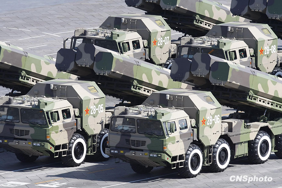 2009年10月1日,中華人民共和國成立60周年慶祝大會在北京舉行。圖為新型地地導(dǎo)彈方隊通過天安門廣場。