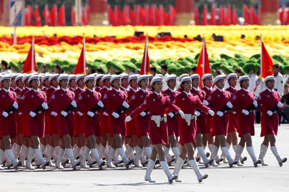 2009年10月1日,北京,首都各界慶祝中華人民共和國成立60周年大會在北京舉行。圖為閱兵式上英姿颯爽的女民兵。