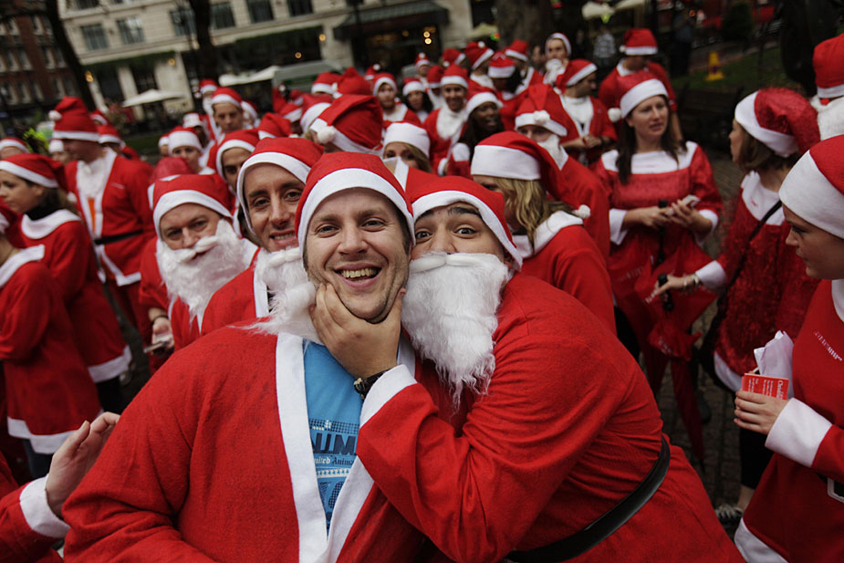 10月6日,英國(guó)倫敦市中心100多位圣誕老人為籌集乳腺癌護(hù)理善款而參加歡樂(lè)跑活動(dòng)。圖片來(lái)源:中國(guó)新聞網(wǎng)