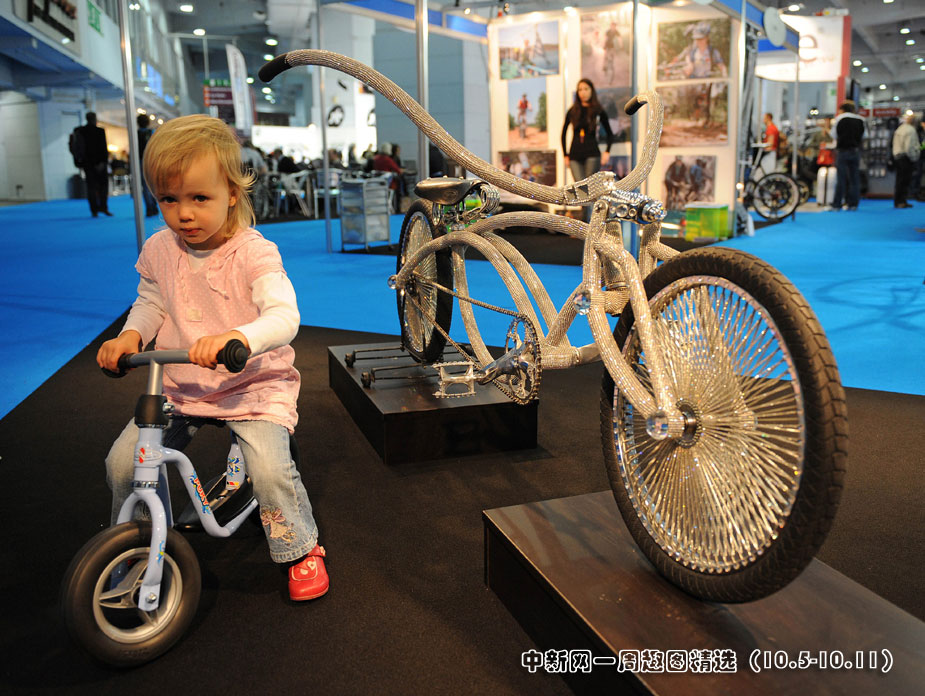 10月8日,2009自行車展在倫敦市中心開(kāi)幕,超過(guò)11萬(wàn)顆施華洛世奇水晶覆蓋的自行車成為有史以來(lái)最昂貴的自行車,該車由英國(guó)人本·威爾遜設(shè)計(jì)制造。來(lái)源:中國(guó)新聞網(wǎng)