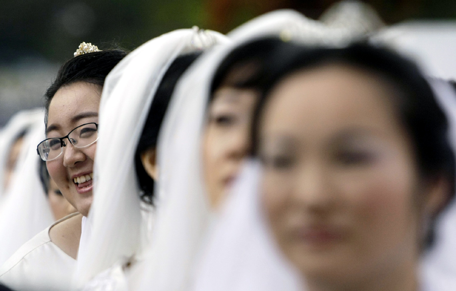 周三(10月14日),來自世界各地約4萬(wàn)人在韓國(guó)漢城以南的日月潭大學(xué)參加集體婚禮,并成為韓國(guó)10年來規(guī)模最大的集體婚禮。圖片來源:中國(guó)新聞網(wǎng)