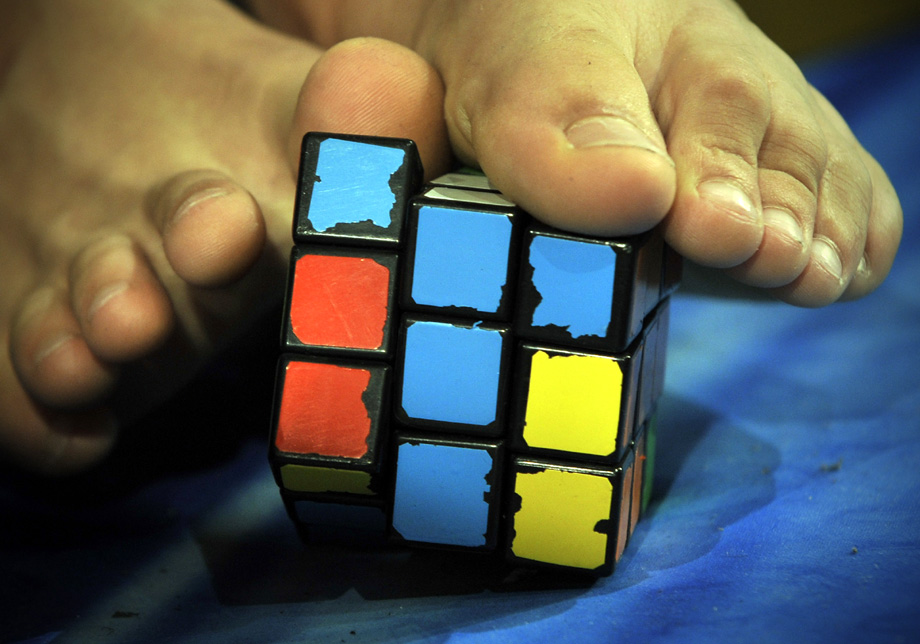 圖為一名參賽者在用腳玩轉(zhuǎn)魔方。10月18日,匈牙利魔方大賽在首都布達佩斯舉行,各路魔方高手展開對決。圖片來源:中國新聞網(wǎng)
