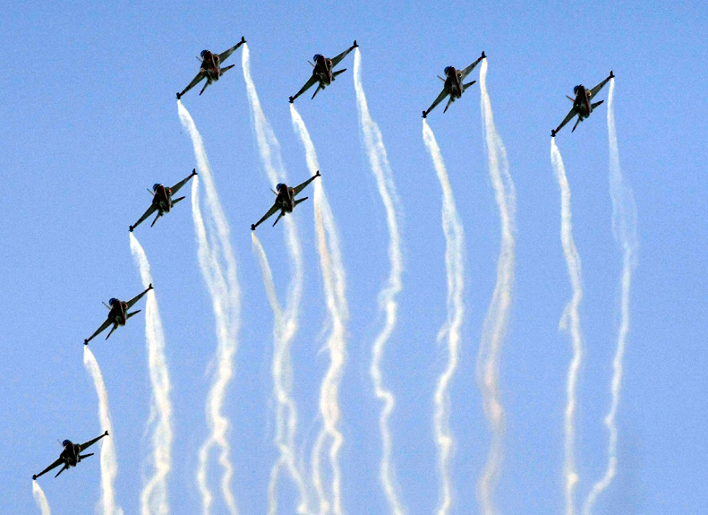 周二(20日),韓國黑鷹特技飛行表演隊在2009首爾國際航空航天與國防展上進行精彩的特技飛行表演。 來源:中國新聞網(wǎng)