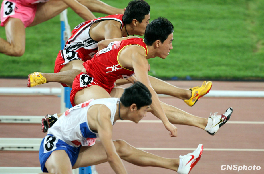 10月24日晚,全運(yùn)會(huì)110米欄預(yù)賽在濟(jì)南奧體中心舉行,“飛人”劉翔以13秒75成績輕松晉級(jí)決賽。來源:中國新聞網(wǎng)
