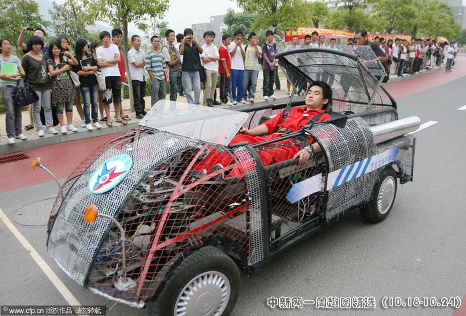 2009年10月20日下午,廈門理工學院舉行的“首屆汽車設(shè)計大賽”動態(tài)賽,參賽的11支隊伍顛覆了大家對傳統(tǒng)汽車的想象,“躺著開的概念車”等各種“奇思妙想”一應俱全。莫風 攝>>點擊觀看詳細內(nèi)容