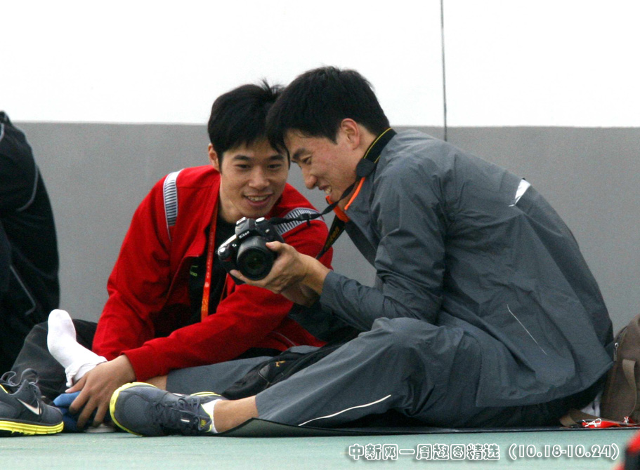 10月22日下午,“飛人”劉翔亮相濟(jì)南奧體中心田徑訓(xùn)練場(chǎng),訓(xùn)練間隙手拿相機(jī),客串?dāng)z影記者。中新社發(fā) 張宇 攝。>>點(diǎn)擊觀看詳細(xì)內(nèi)容