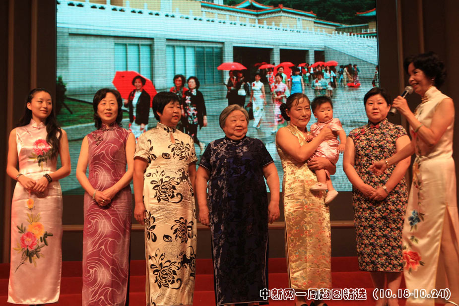 10月22日,上海一家庭七位女性,四代同堂登臺(tái)演繹旗袍魅力,其中包括一歲女孩和七十七歲阿婆,成為當(dāng)日《旗袍,向世博走來(lái)》大型匯報(bào)演示中最引人注目的一幕。中新社發(fā) 潘索菲 攝 >>點(diǎn)擊觀看詳細(xì)內(nèi)容