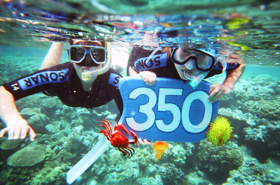 2009年10月24日,當日是350全球應對氣候變化行動日,世界各地的民眾紛紛用自己的方式來表示對全球氣候變化的關注和擔憂。圖為澳大利亞民眾組織活動紀念350全球應對氣候變化行動日。