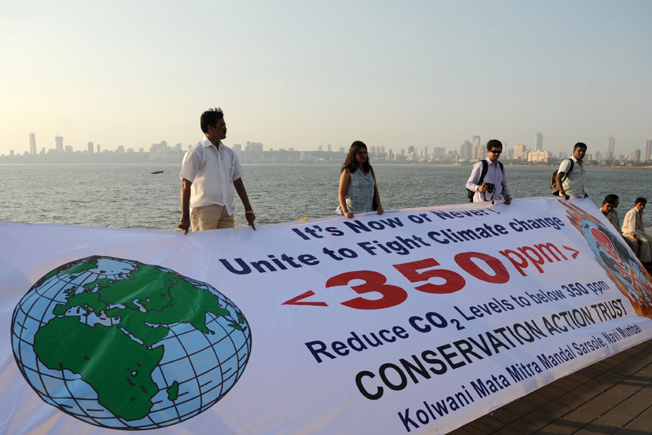 2009年10月24日,當日是350全球應對氣候變化行動日,世界各地的民眾紛紛用自己的方式來表示對全球氣候變化的關(guān)注和擔憂。圖為印度民眾組織的活動。