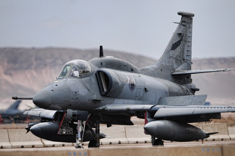 當(dāng)?shù)貢r(shí)間10月26日,美國(guó)、法國(guó)、阿根廷、巴西、智利等國(guó)的空軍在智利首都圣地亞哥以北的安托法加斯塔舉行了一場(chǎng)聯(lián)合空中軍事演習(xí)。通過(guò)模擬維和任務(wù),交流作戰(zhàn)技術(shù)和經(jīng)驗(yàn)。圖為阿根廷空軍的戰(zhàn)機(jī)。